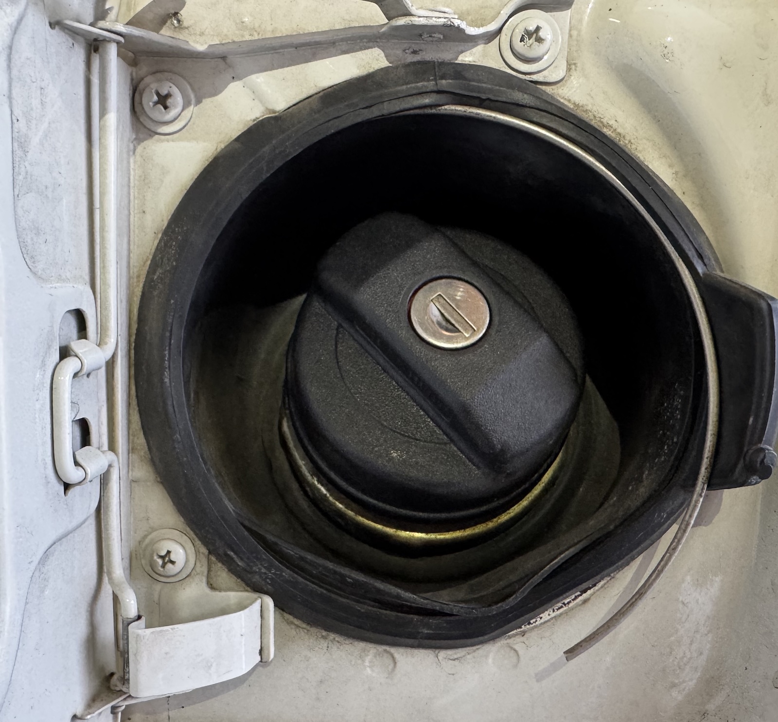 - (not shown) put a short piece of tubing to connect the pump inlet and outlet -- this keeps dirt out, keeps gas fumes in the tank, and will be needed later if you decide to pressure test.